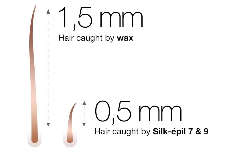 While both epilation and waxing remove hairs from the root, waxing can press hairs flat against the skin, making them harder to lift and remove. Braun Silk-épil tweezer technology catches hair as small as a grain of sand (0.5mm). No more in-between days, no more hassle.