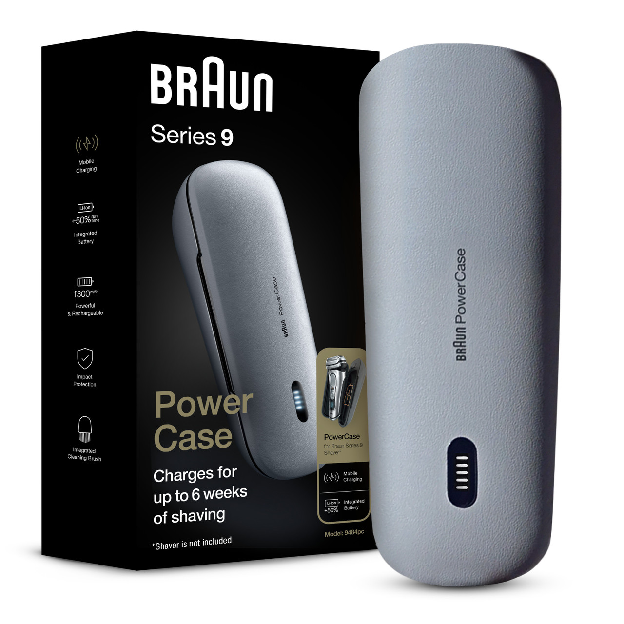 The Powercase is fully compatible with all Braun Series 9 and Series 8 electric shavers