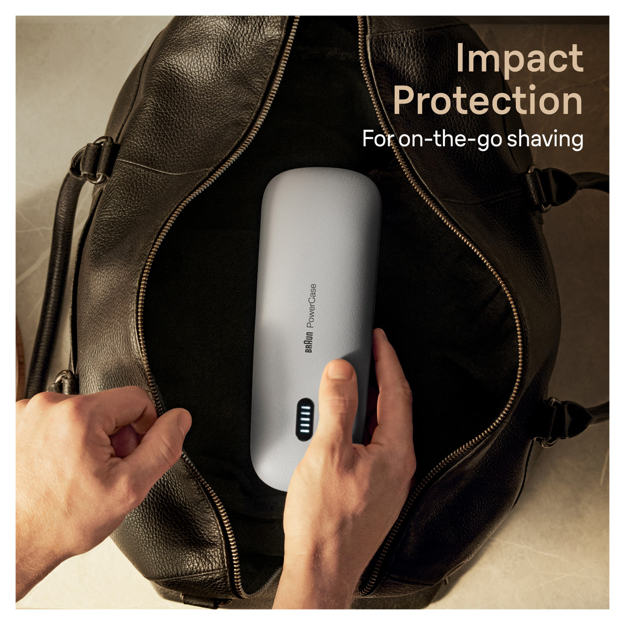 Meet Braun PowerCase: the world's first fully portable shaver charger case. The case provides 50% more battery runtime—that's up to 6 weeks of cordless shaving anytime, anywhere. The PowerCase is built from durable premium materials, and is designed to protect your shaver from bumps, scratches, dust, and spillage. Fully compatible with Braun Series 9 Pro, Series 9 and Series 8 electric shavers for men. Get the world's first ever on-the-go powercase for a shave that goes anywhere you do. Designed for impact protection while traveling.