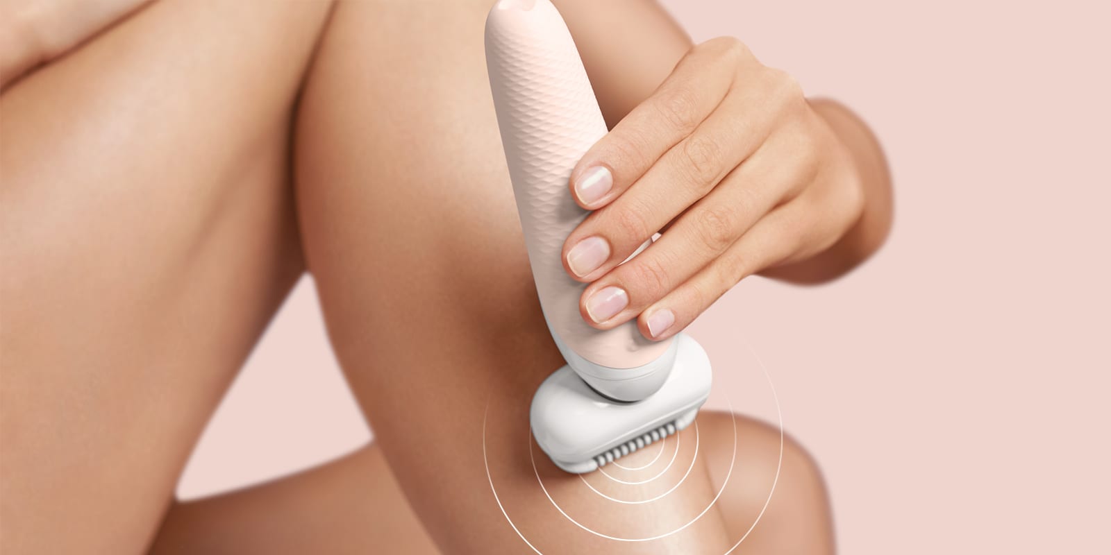 Some users might be afraid of using an epilator because they are afraid they might damage their skin, but that is not the case. For example, Braun’s SensoSmart™ technology flashes with a red light to help guide you to the optimum pressure to use while epilating. This gives you feedback about the pressure you need to apply for the optimum efficiency. You really cannot go wrong with it. People often think they need to push harder with the epilator than with a razor or other methods and that is actually not the case. Using too much pressure is actually less effective. With the SensoSmart™ technology you get constant feedback with the red light that signals as you epilate, so you don’t push too hard.